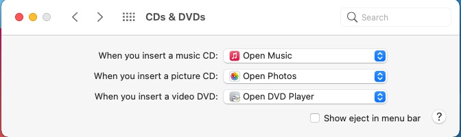 This changes how you want to process a CD or DVD when you insert a disk.