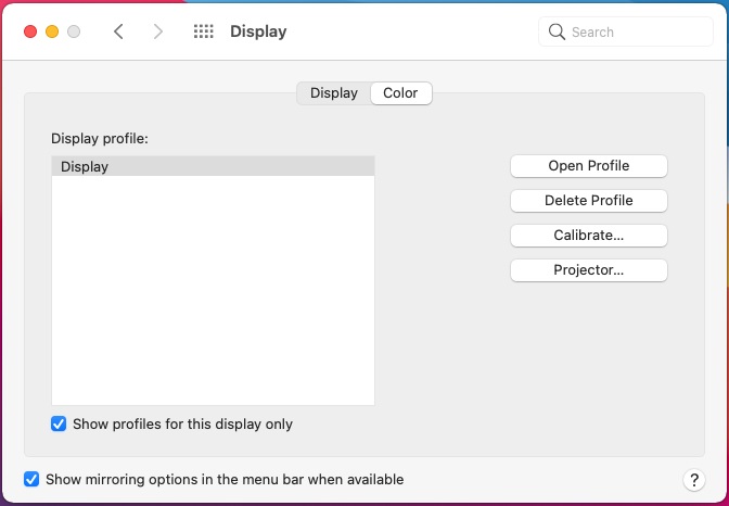 Show profiles for this display only. Show profiles that work for the current display device.