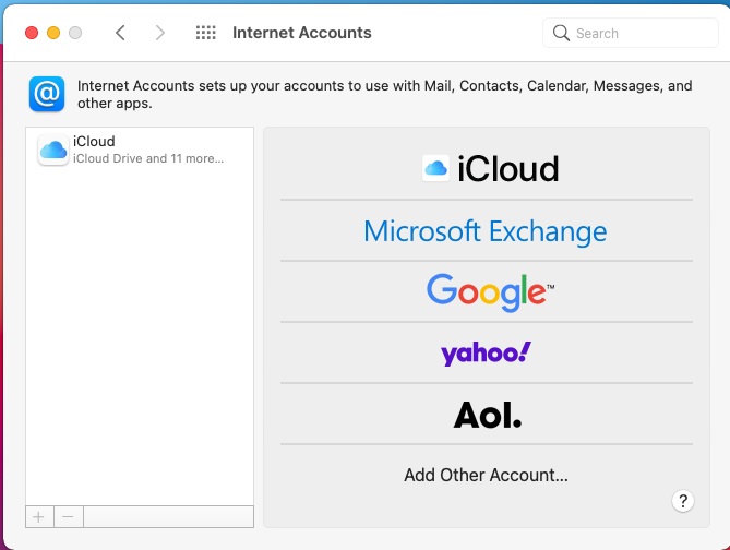 This setups all your accounts to access commonly used Internet sites such as Apple, AOL, Google, Microsoft, Yahoo, Facebook, Twitter and so on.