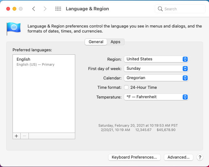 Preferred Languages. List of preferred language(s) to use. To default one is set as 'Primary'. Use +/- buttons to add or remove languages