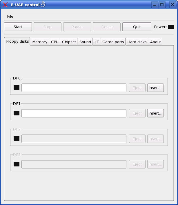The Amiga can emulate upto four disk drives names DF0, DF1, DF2, DF3 (Disk Floppy x).