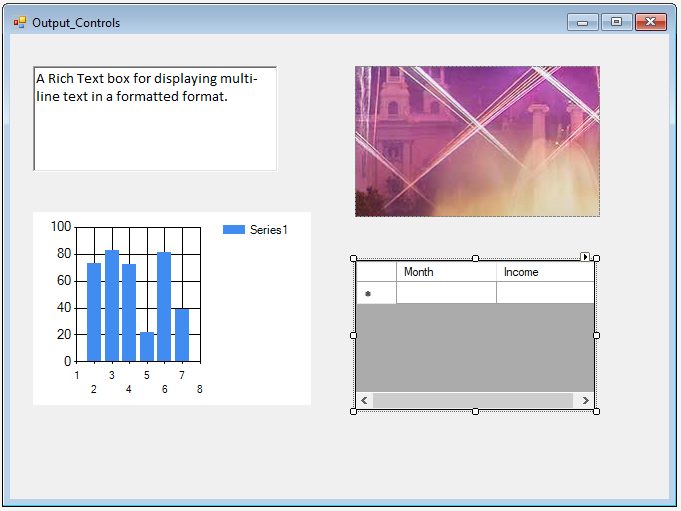 - DataGridView - Display data in tabular format.